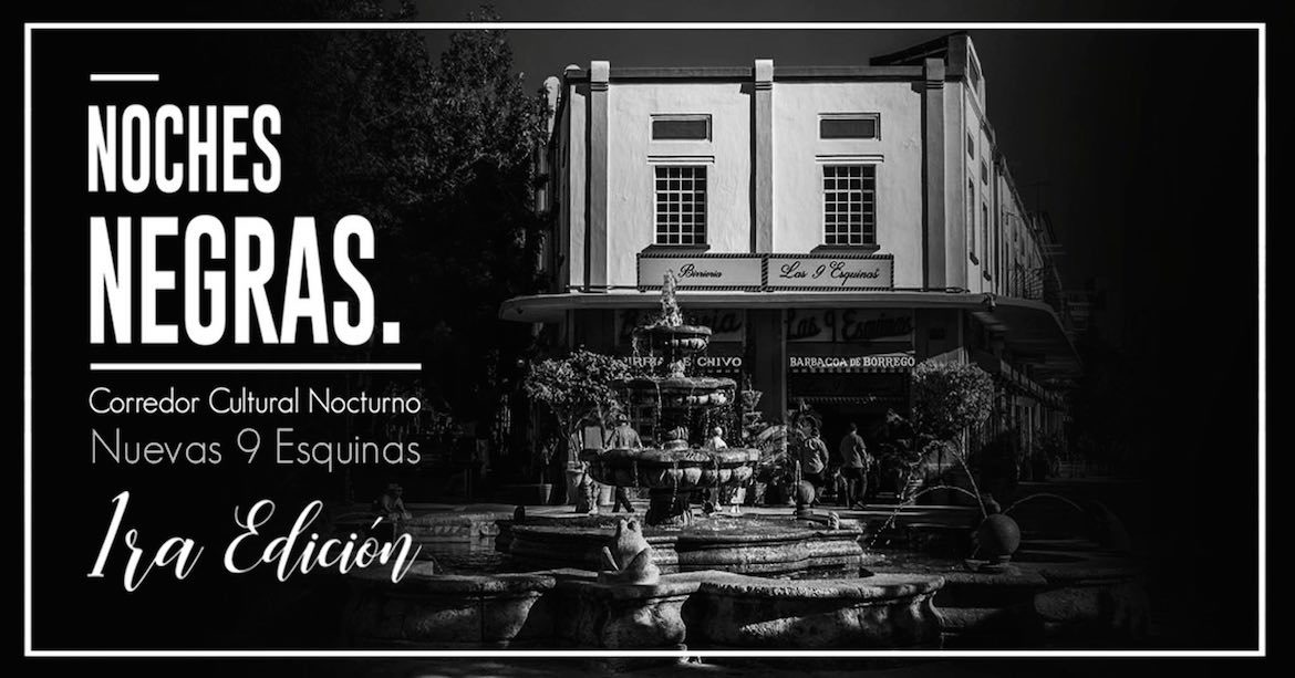 Un corredor cultural nocturno llega al barrio de las Nueve Esquinas en Guadalajara, se trata de la primera edición de Noches Negras promovido por Casa Sombra, que se llevará a cabo el viernes 27 de septiembre desde las 19:00 horas y hasta medianoche. El evento, que es de entrada libre, contará con muestras de arte, diseño, literatura, proyecciones de cine, transmisiones de radio y música en vivo; todo con la finalidad de crear un espacio para la cultura en relación con la comunidad vecinal.