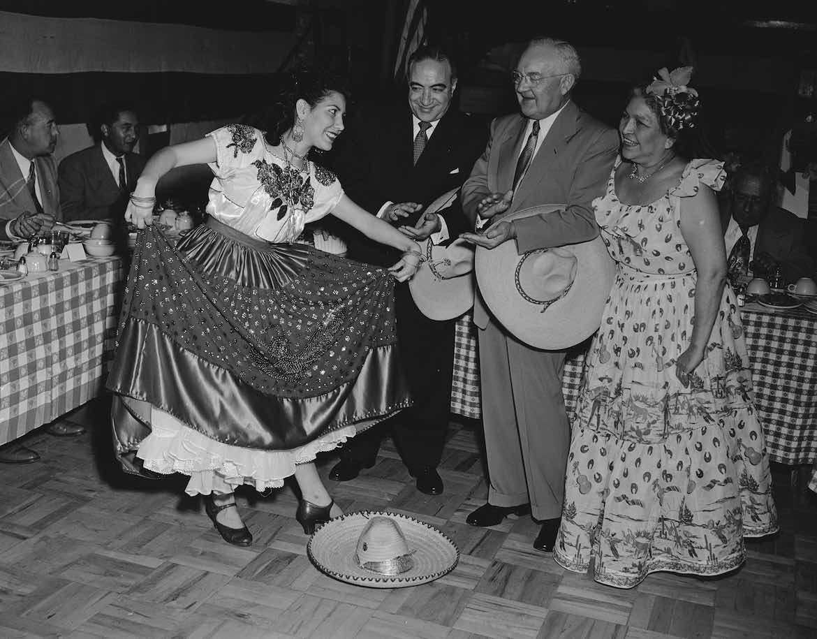 - «Mayor Fletcher Bowron celebrates Cinco de Mayo» por Los Angeles Times photographic archive, Digital collections — UCLA Library.