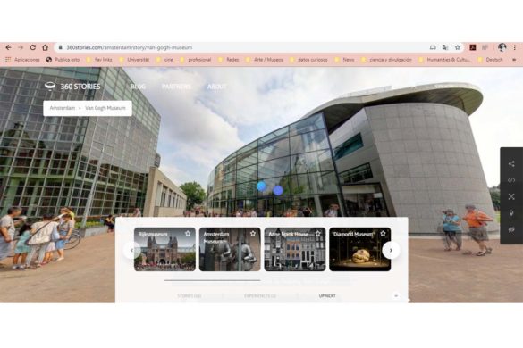 Por otro lado, en el recorrido de 360° grados (https://360stories.com/amsterdam/story/van-gogh-museum), si das click en este enlace, puedes visitar por pasillos y por secciones las obras dispuestas en el museo, como si estuvieras ahí. El recorrido lo haces tú a tu paso, para avanzar debes dar click en las flechas que aparecen en la parte baja de la pantalla.
