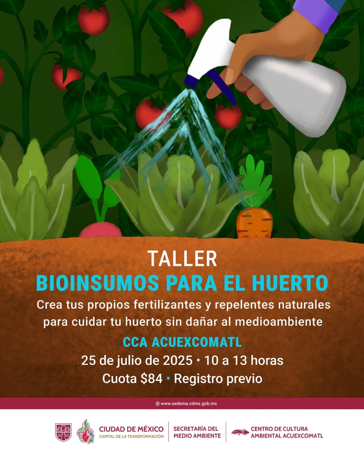 La Secretaría del Medio Ambiente (SEDEMA) de la Ciudad de México, a través de la Dirección General de Coordinación de Políticas y Cultura Ambiental (DGCPCA) y la Dirección de Cultura Ambiental, invita a la ciudadanía a participar en el taller “Elaboración de bioinsumos para el huerto”, una actividad formativa que promueve prácticas responsables y amigables con el entorno.}