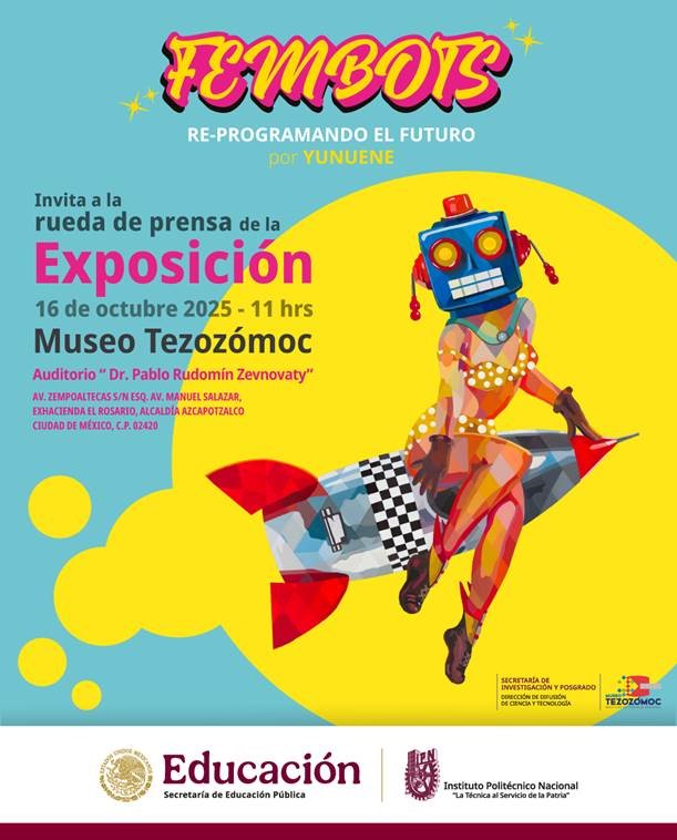 Ciudad de México, 3 de Octubre de 2025 — El arte y la tecnología se dan la mano en FEMBOTS: Re-programando el futuro, la nueva exposición de la artista plástica YUNUENE (Yunuen Esparza), que se presentará en el Museo Tezozómoc del 18 de octubre de 2025 al 31 de enero de 2026.