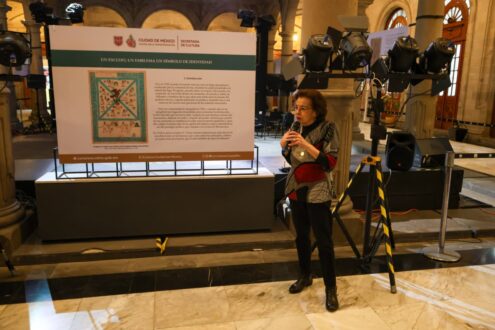 “Esta exposición nos invita a reflexionar sobre la historia del escudo y sobre aquello que nos representa como ciudad. (…) Que la exposición tenga lugar en este espacio del Ayuntamiento, lugar de decisiones y de memoria, es reconocer la historia de quienes lo habitaron y cómo sus transformaciones siguen dialogando con la identidad de la Ciudad de México”, expresó Mariana Gómez Godoy.